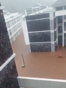 सोमवारी (दि.१८) पडलेल्या पावसामुळे या कॉलनीच्या आवारात तीन ते चार फूट पाणी जमा झाले होते. त्यामुळे कॉलनीत पार्किंग केलेली वाहने बुडाली होती. तर तळ मजल्यावर राहणाऱ्या रिलायन्सच्या अधिकारी वर्गाच्या कुटुंबीयांचे प्रचंड हाल झाल्याने त्यांना इतरत्र हलवावे लागले शिवाय त्यांच्या सामानाचेही नुकसान झाले आहे. करोडो रुपये खर्चून बांधलेल्या प्रशस्त व दिमाखदार दिसणाऱ्या या कॉलनीची अवस्था पाहून सर्वत्र तीव्र संताप व्यक्त होत आहे.