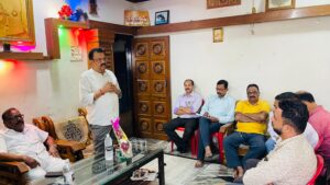 राष्ट्रवादी काँग्रेसचे ज्येष्ठ नेते आणि रोहा पंचायत समितीचे माजी सदस्य हरीश काळे यांच्या निवासस्थानी शांतीनगर भागातील प्रमुख व्यक्ती व कार्यकर्त्यांच्या बैठकीत मार्गदर्शन करताना किशोरशेठ जैन बोलत होते. या बैठकीला राष्ट्रवादीचे विभागीय नेते भाई टके, हरीश काळे, बाबूशेठ मोदी, नागोठणे विभागीय अध्यक्ष संतोषभाई कोळी, शहर अध्यक्ष बाळासाहेब टके, संजय काकडे, बिपीन सोष्टे, रुचिर मोरे, दत्ताराम झोलगे, शैलेश रावकर, ज्ञानेश्वर साळुंखे, निम्याशेठ मोदी, मंदार चितळे, नितीन पत्की, बाळा पाटील, विजय शहासने, म्हात्रे तात्या, सिद्धेश काळे, मंदार चितळे, राजू सुतार, जगदीश दिवेकर, अंकुश ताडकर, मंदार मोरे आदींसह शांतीनगर भागातील कार्यकर्ते यावेळी उपस्थित होते.