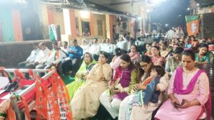 नागोठणे जिल्हा परिषद गटाचे राष्ट्रवादी काँग्रेसचे उमेदवार किशोरभाई जैन व नागोठणे पंचायत समिती गणाच्या उमेदवार समृद्धी संतोष कोळी यांच्या प्रचारार्थ बुधवारी (दि. ४) रात्री नागोठणे केएमजी (कुंभार आळी, मराठा आळी, गवळ आळी) विभागात घेण्यात आलेल्या सभेच्या वेळी नरेंद्रशेठ जैन बोलत होते. यावेळी राष्ट्रवादीचे नेते नरेंद्रशेठ जैन यांच्या समवेत नेते भाई टके, उमेदवार किशोरभाई जैन, समृद्धी कोळी, शिवरामभाऊ शिंदे, नागोठण्याच्या सरपंच सुप्रिया महाडिक, भाजप जिल्हा उपाध्यक्षा श्रेया कुंटे, माजी सरपंच विलास चौलकर, डॉ. मिलिंद धात्रक, राष्ट्रवादी विभागीय अध्यक्ष संतोष कोळी, शहर अध्यक्ष बाळासाहेब टके, संजय भोसले, माजी उपसरपंच मोहन नागोठणेकर, सुनिल लाड, ग्रामपंचायत सदस्य संतोष नागोठणेकर, चंद्रकांत गायकवाड, लियाकतशेठ कडवेकर, घिसुशेठ जैन, भाजप नेते आनंद लाड, अपर्णा सुटे, गणेश घाग यांच्यासह कार्यकर्ते व ग्रामस्थ उपस्थित होते.